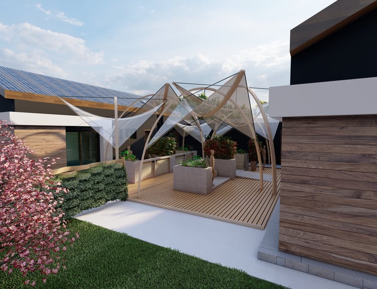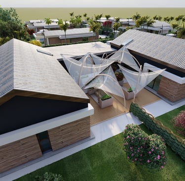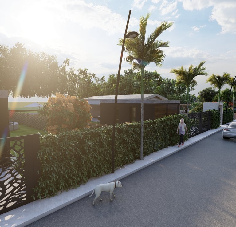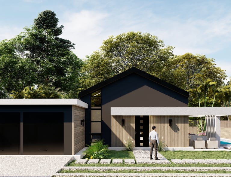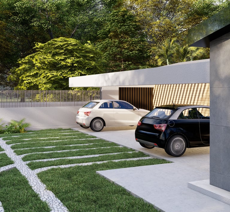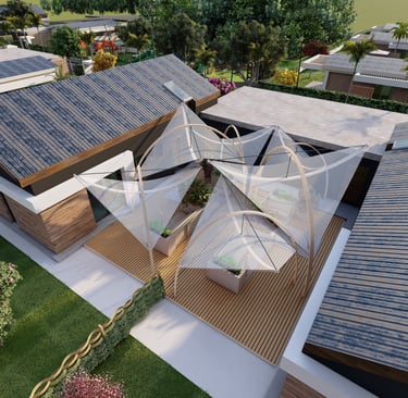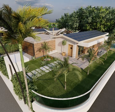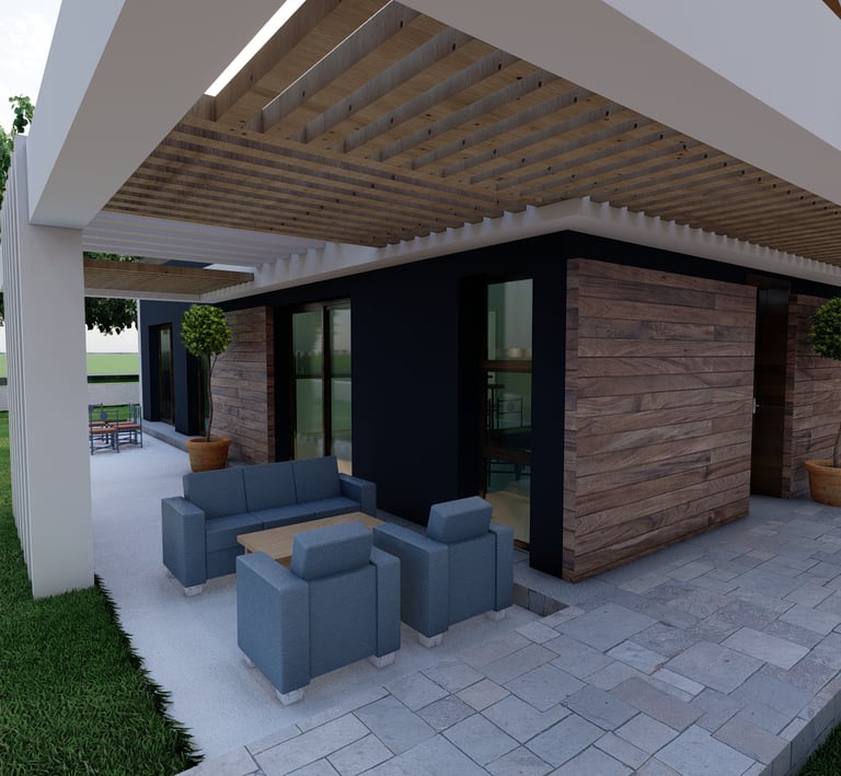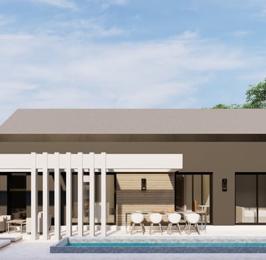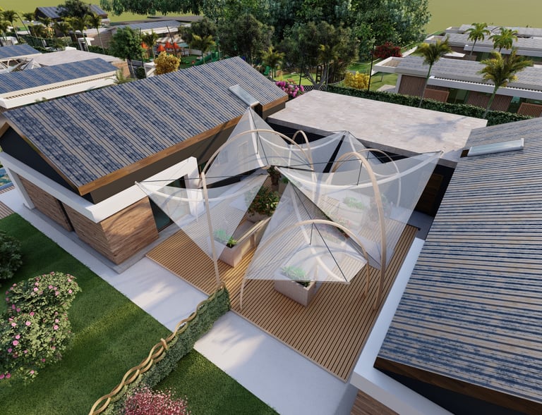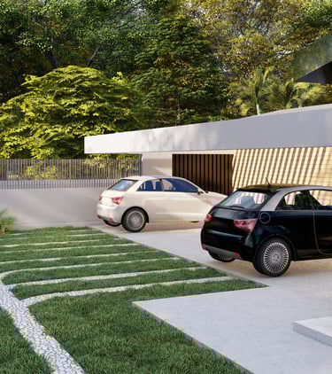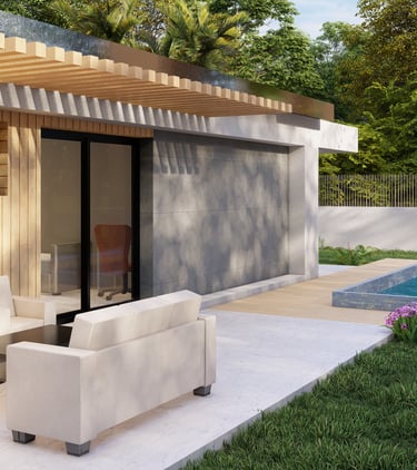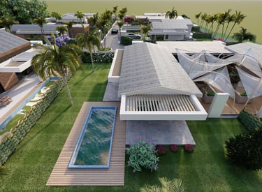 Tre ville moderne con piscina, dettagli eleganti e sostenibili.