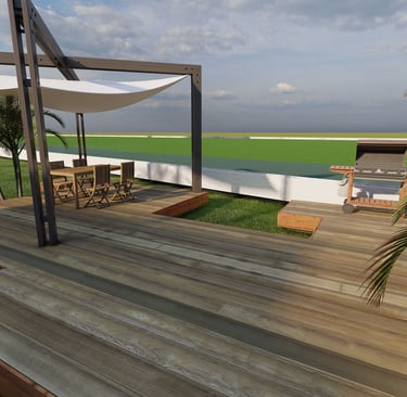 Bifamiliare esclusiva con due piscine private e giardino indipendente, un’oasi di comfort e design.